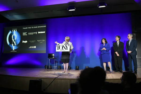 73rd ANNUAL TONY AWARDS SPONSORS slide   American Theatre Wing President and CEO  Heather Hitchens , The Broadway League President and CEO  Charlotte St. Martin , American Theatre Wing Chairman  David Henry Hwang , and The Broadway League Chairman