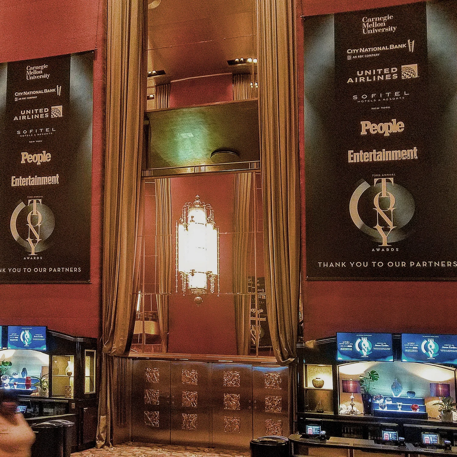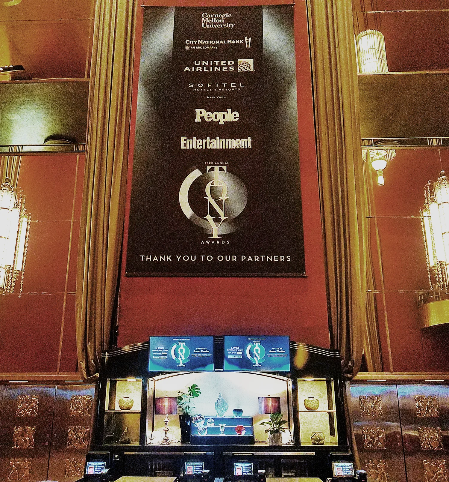 2019 TONY Awards Sponsor Banners  Radio City Music Hall lobby.